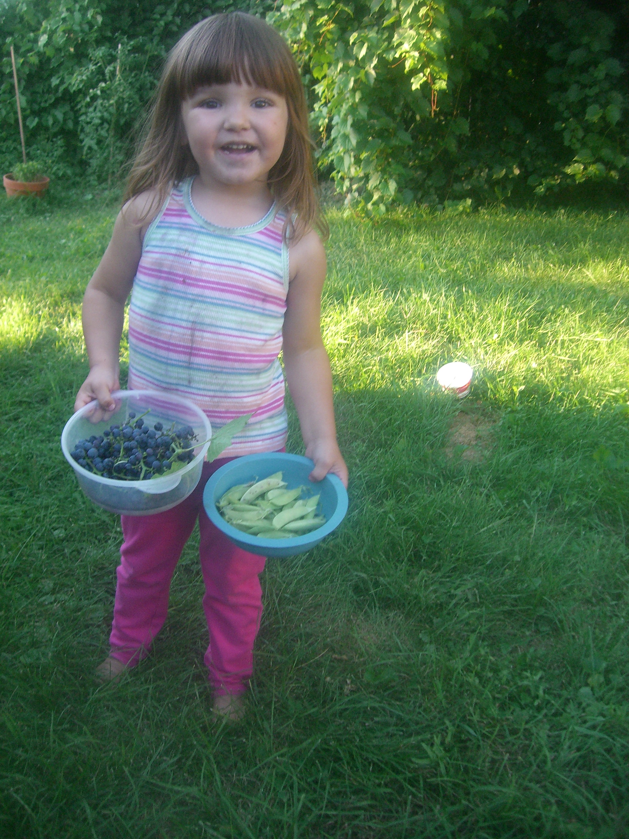 It’s harvest time in the garden, as Aubrey so gleefully displays here: