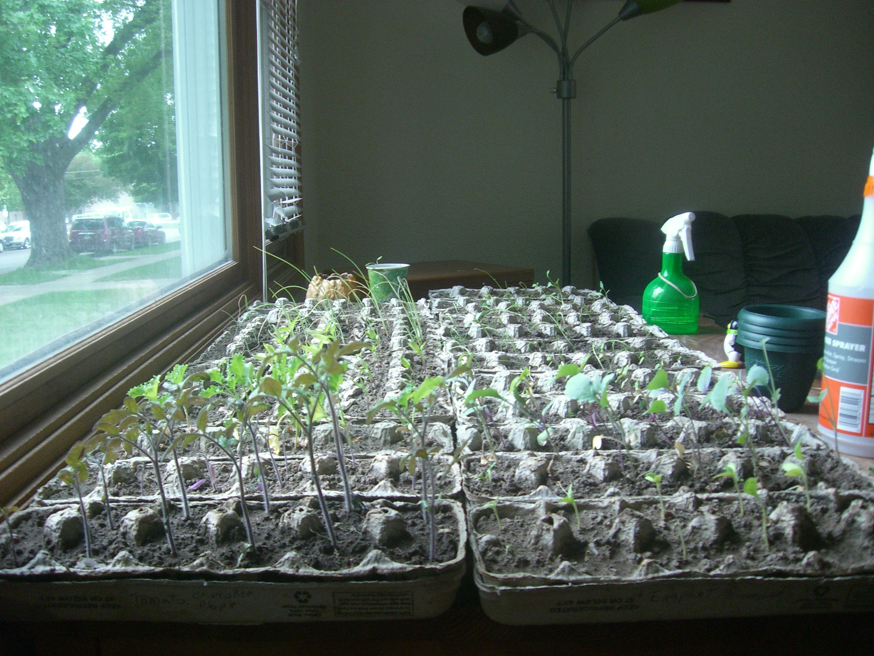 As you can see, I still take crooked, underexposed photos! Above is Trevor in the newly tilled space, about triple the size of last year’s garden. The other photo is the seedlings we’ve been nurturing inside in preparation for better weather. You can tell we are WAY more prepared and informed this year. Trevor has charts and lists and everything. They are color coded.