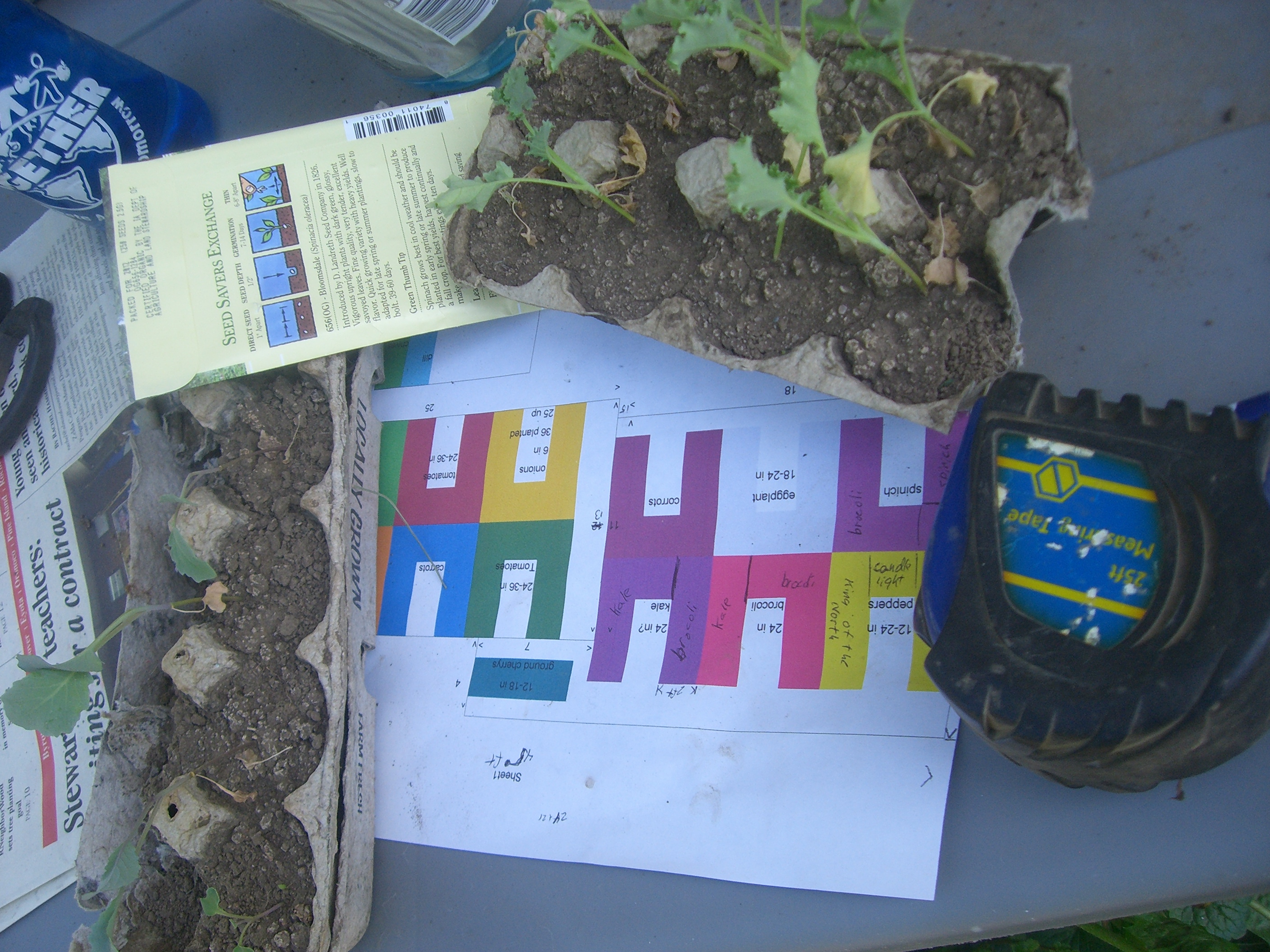 The full list of what we’re planting this year: spinach, eggplant, 3 kinds of peppers, 3 kinds of tomatoes, two kinds of peas, kale, 2 kinds of lettuce, beets, 2 kinds of carrots, broccoli, onion, garlic, cucumbers, zucchini, cabbage, and ground cherries. Out front instead of flowers this year we are doing herbs: mint, basil, chives, oregano, cilantro, and dill. And of coarse we also anticipate the return of the wild grapes that vine over the back fence.