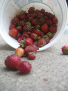 It’s weeding season! Which it will be pretty much all summer long and kind of into fall. My burgeoning affection for weeding that was sparked last year is growing into a fully developed passion. I just love traipsing out to the garden with my trowel in hand, plopping my bottom down in the dirt and attacking everything that doesn’t look strictly edible or intentional. It is especially satisfying if I can pull up a mother of a long extended root. Weeding like this helps me identify and emphasize the location of the tiny little vegetable plants that I don’t want to uproot. Which I basically decide are vegetables if they are seriously struggling to live and look like no other plant around them (unlike the weeds which are healthy and numerous). We’re finding that a LOT of baby romas are sprouting up on their own from seeds of last year’s plants, and I am on a mission to uproot most of these because I know what all-consuming beasts of a plant they can become. But I also remember how delicious they are, so about 3 of them can stay. I’ll actually give them cages this year, even though I know they’ll only take them as a suggestion.