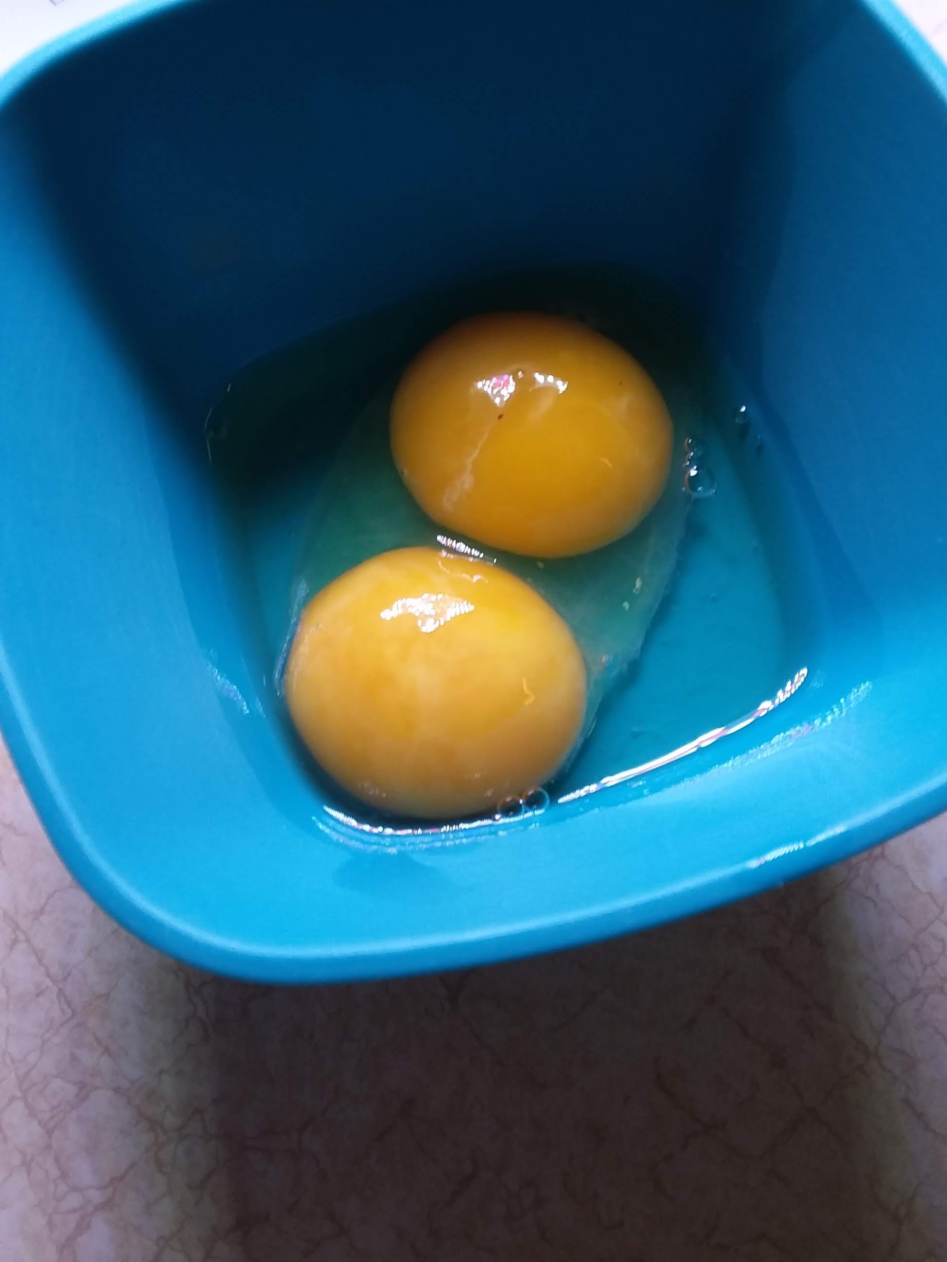 The large one on the left was revealed to contain the double yolk on the right.