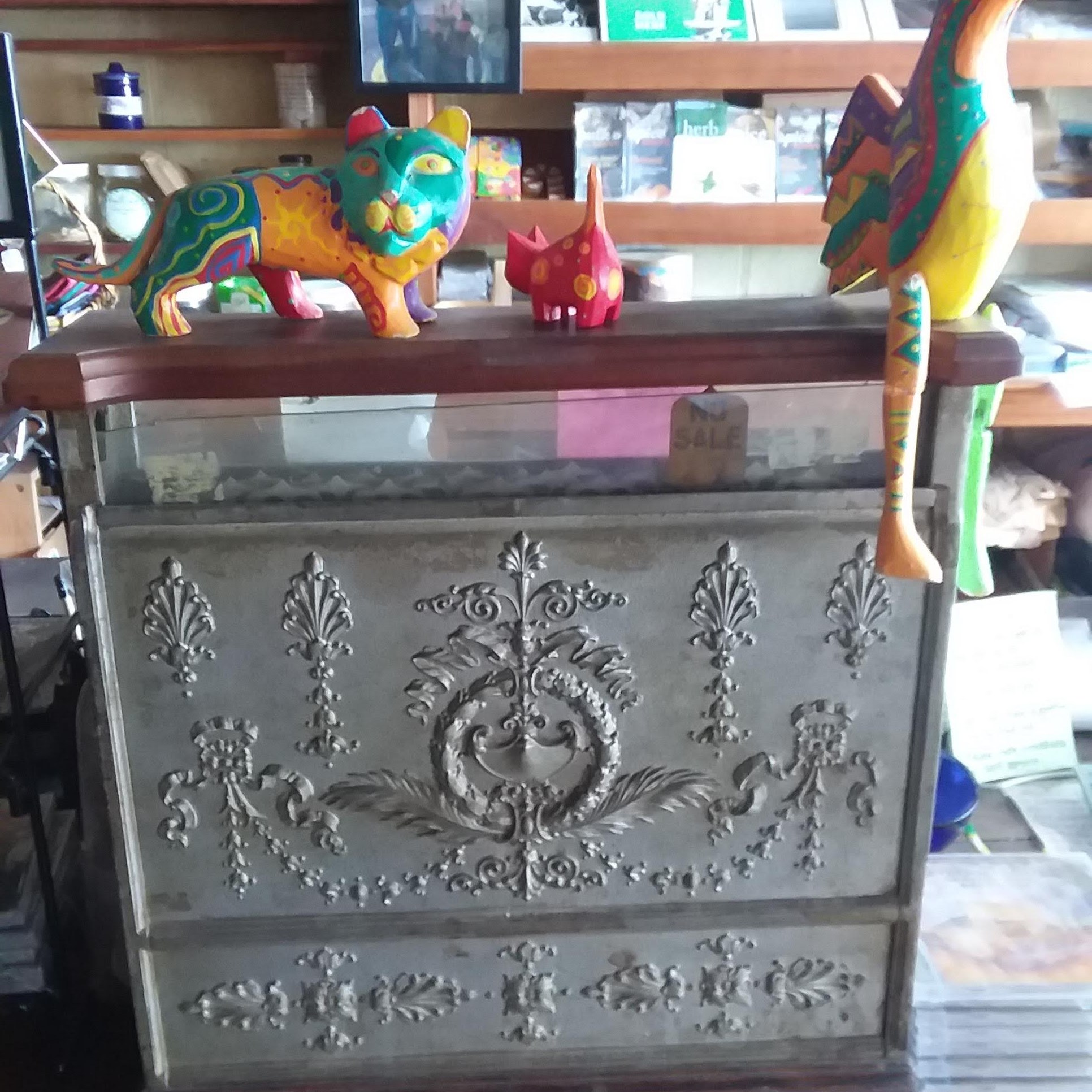 This hidden gem is the Oak Center General Store, and it has functioned as a multi-faceted community gathering place for the past 45 years. I first encountered it ten years ago when some friends of mine, veterans of the Oak Center experience, brought me along with them for a concert. I was instantly enchanted by the historic storefront with its shelves of fair trade chocolate, locally grown vegetables, and gleaming containers of bulk spices. Antique features like a hanging oil lamp, ornate cash register, and the blue metal ceiling also drew me in. The building itself dates back to 1913, when it was constructed on the site of a co-op creamery.