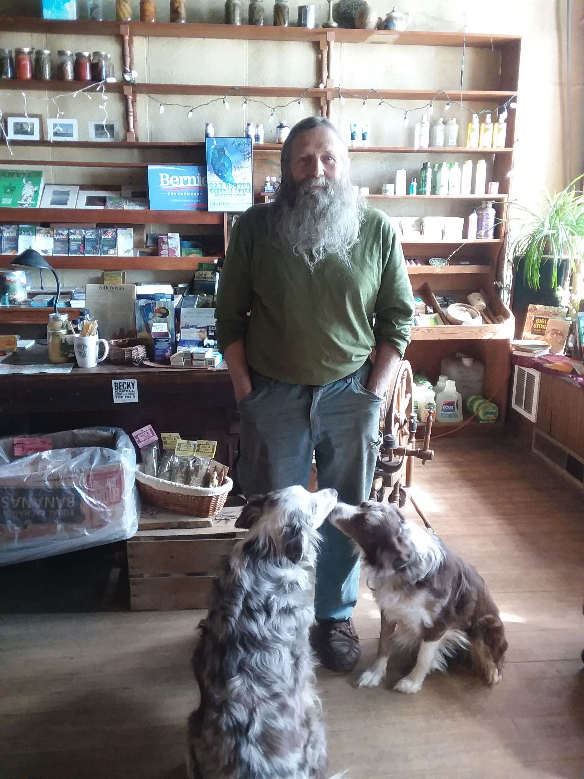 I recently returned to Oak Center for a visit and a chat with Steven Schwen, the owner and operator. His thirteen acre property, Earthen Path Organic Farm, stretches out behind the store. Outside I could hear his large flock of honking geese. The inside of the building was quiet and still, absent of the music and people I am accustomed to. Steven and I sat down with his Australian shepherds, Rosie and Freckles, to discuss the history of Oak Center and the path that led him here.