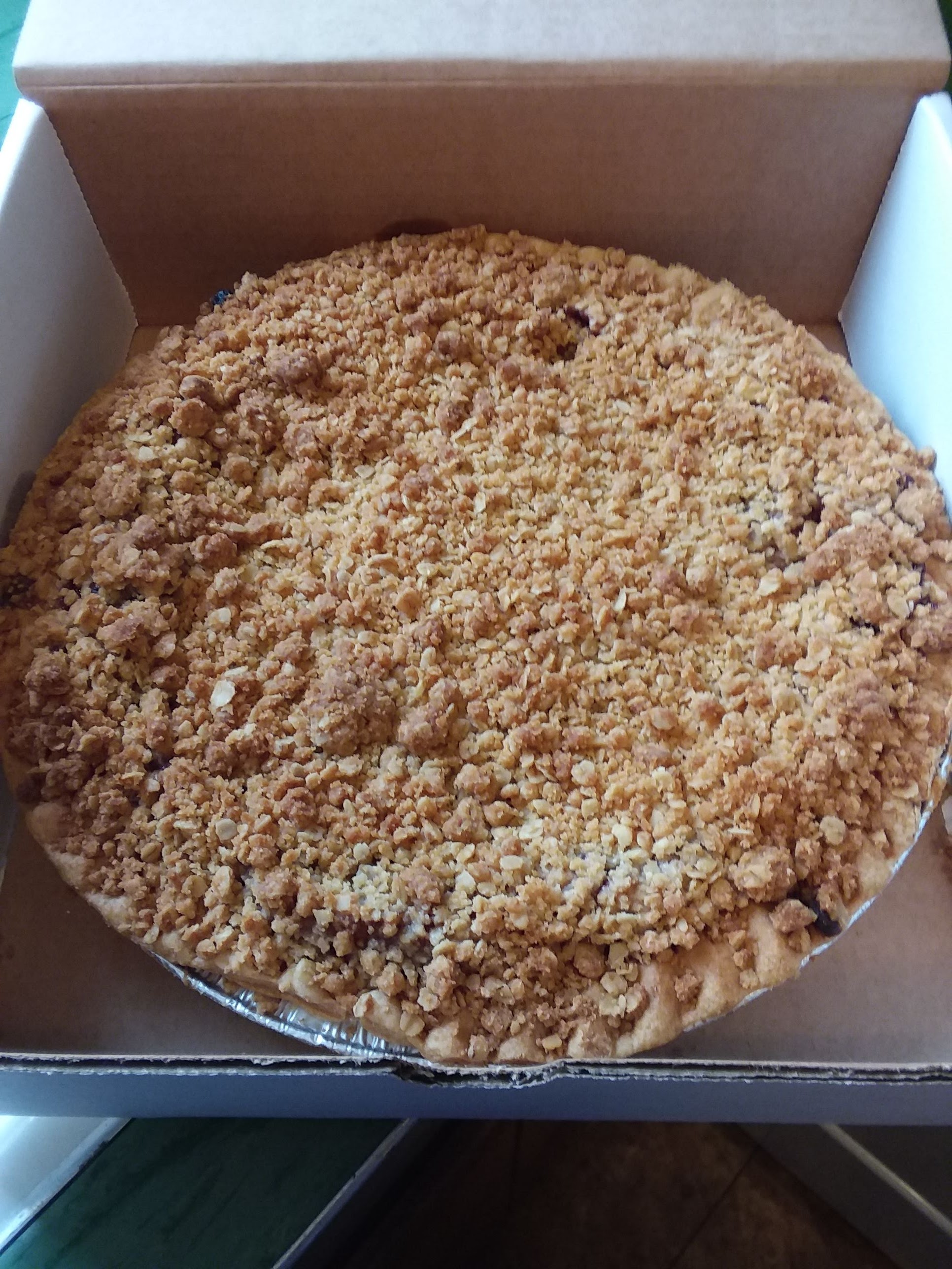 I sadly said goodbye to half of this custard pie yesterday, as I made my way north for educational purposes. Thankfully my journey led me past the world-famous Betty’s Pies, where I was fortunate to come upon a Great Lakes Crunch.