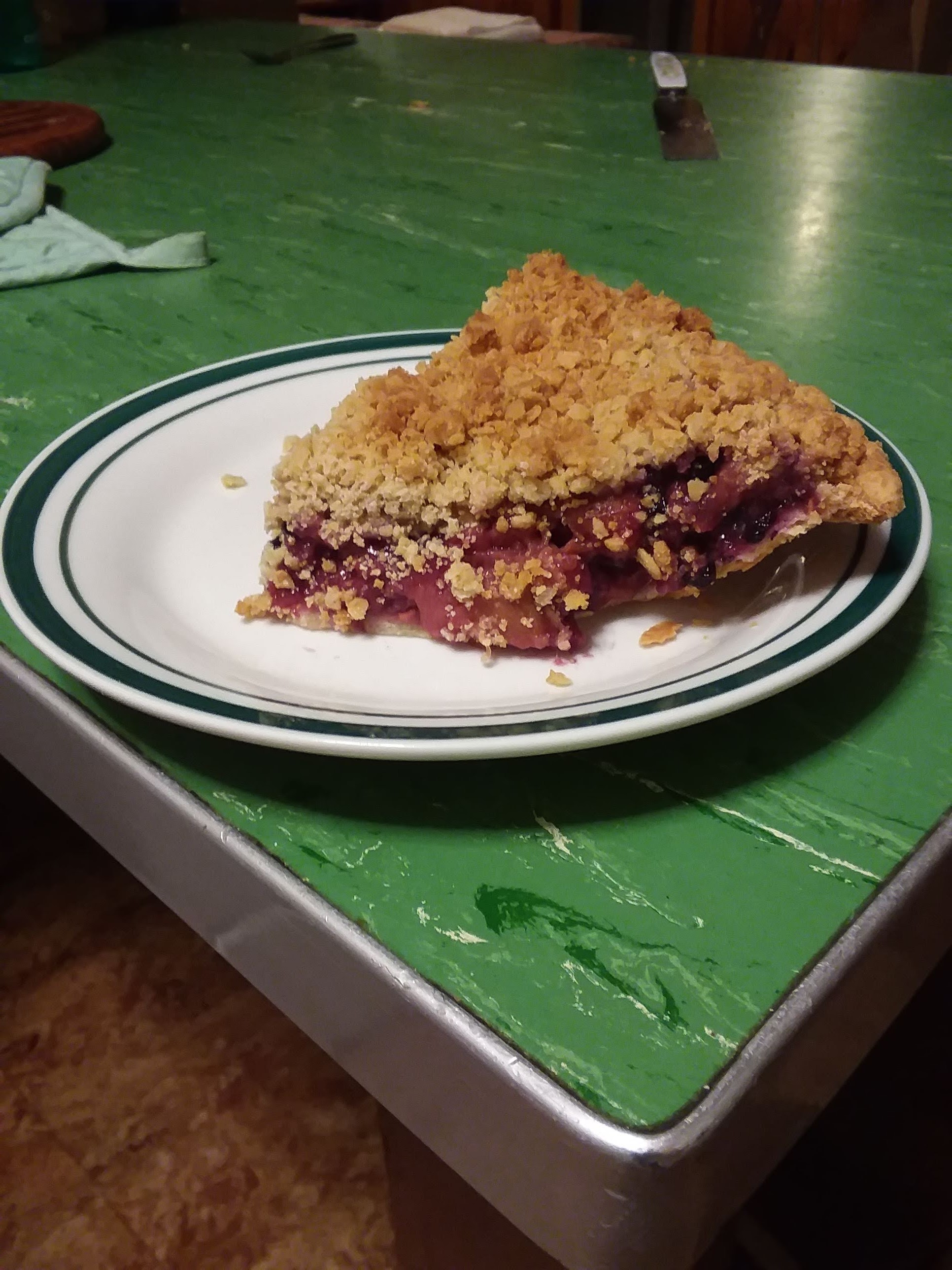 That’s apples, rhubarb, blueberries, raspberries, and strawberries all in one pie!
